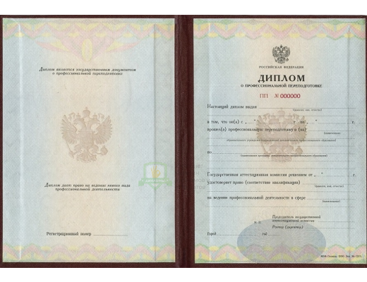 Заказать диплом о профессиональной переподготовке 1996 - 2012 год можно по телефону или через форму обратной связи. По готовности он будет отправлен вам по указанному нужному адресу. С нами вы легко станете специалистом в любой профессии или получите еще одно образование.