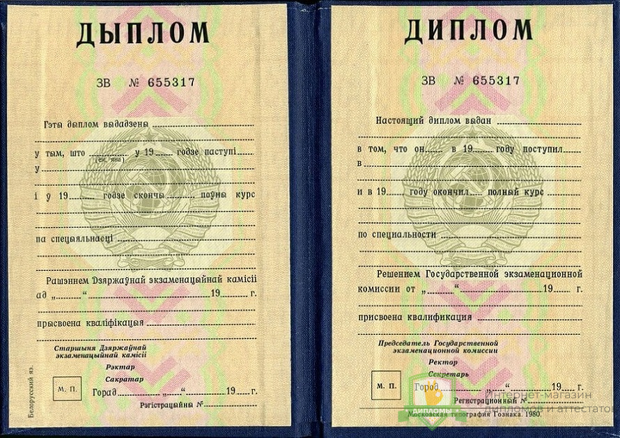 Купить диплом о высшем образовании Белоруссии 1970 - 1993 год