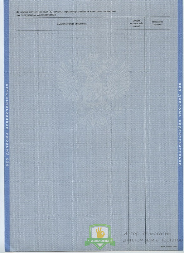 Прибрести диплом специалиста 2004 - 2009 год вы можете в компании «ОК-Дипломы». Работаем на профильном рынке более 20 лет, предлагая клиентам высококачественный сервис и разумные цены. У нас диплом специалиста 2004 - 2009 год выполняется на оригинальном бланке Гознак, дополняется подлинными подписями и печатями.