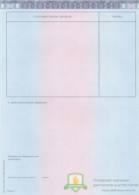 Прибрести диплом специалиста 2014 - 2026 год вы можете в компании «ОК-Дипломы». Работаем на профильном рынке более 20 лет, предлагая клиентам высококачественный сервис и разумные цены. У нас диплом специалиста 2014 - 2026 год выполняется на оригинальном бланке Гознак, дополняется подлинными подписями и печатями.