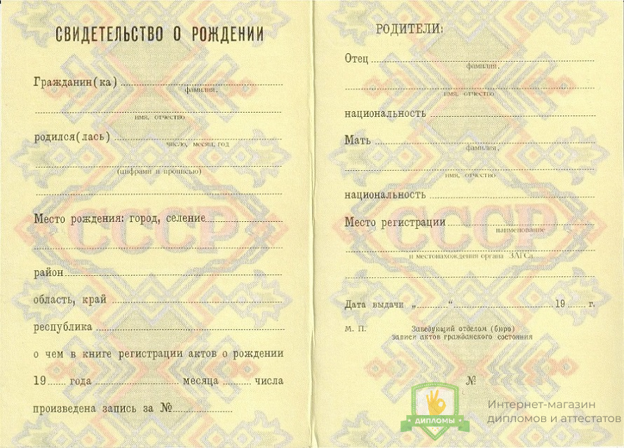 Если вы планируете купить свидетельство о рождении СССР 1971 - 1989 год, не сомневайтесь – получаете подлинный документ, который заполняют профессионалы, имеющие многолетний опыт работы в сфере образования. Документ на 100% соответствует всем требованиями Министерства науки Российской Федерации.